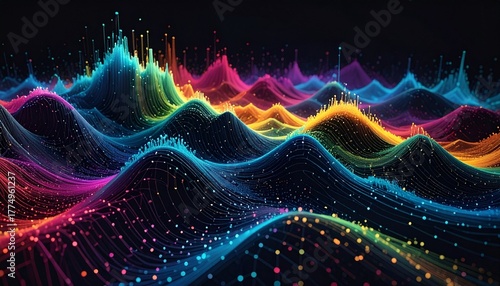 Vibrant light waves undulate across a dark plane
