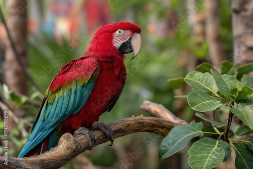 Vibrant, Majestic Parrot Perched on Jungle Branch