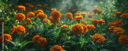 Vibrant marigold flowers adding color to a garden, 4K hyperrealistic photo