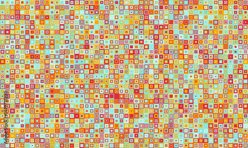 Vibrant mosaic of tiny squares in warm, earthy tones. Perfect for backgrounds, textiles, or website design. Evokes feelings of energy, joy, and playful creativity.