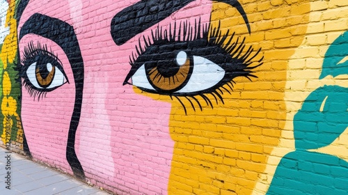 Vibrant Mural Artwork Featuring Striking Eye Details and Colors