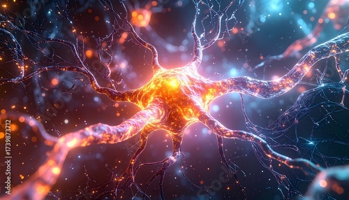 Vibrant Neuron Network: Abstract Brain Activity and Neural Connections.