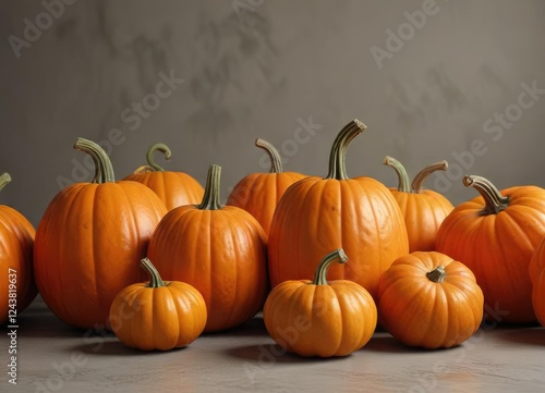 Vibrant orange pumpkins in various sizes on a matching background, Texture, Colorful