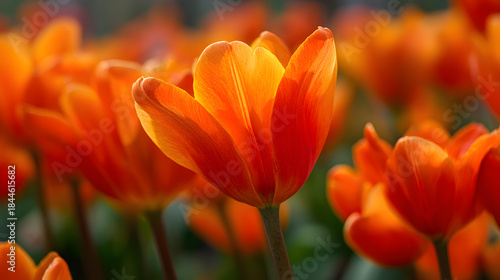 Vibrant orange tulip background with warm saturated petals, natural variation in shapes, sunlight-inspired soft glow, energetic yet refined mood.