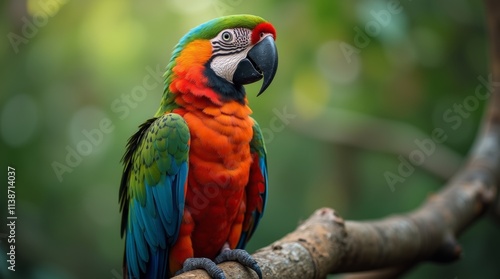 vibrant parrot perched on a branch, showcasing its colorful feathers and unique features