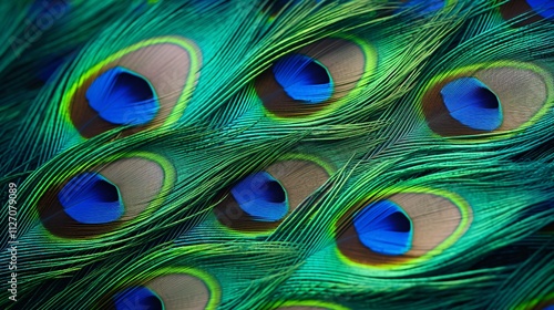 Vibrant Peacock Feather Close-Up with Detailed Textures and Iridescent Hues