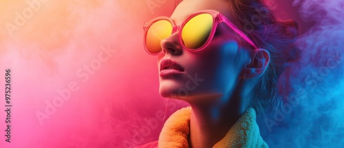 Vibrant Person in Rainbow Haze with Pink Sunglasses