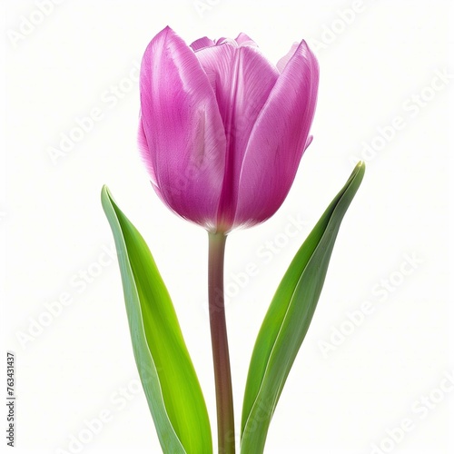 Vibrant Pink Tulip Isolated on White Background - Springtime Beauty