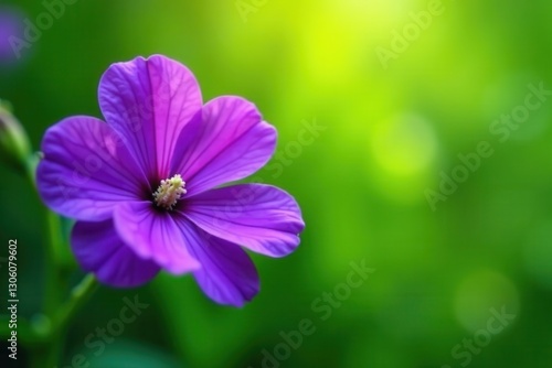 Vibrant purple bloom, white heart, lush green backdrop, closeup, flower, green