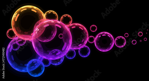 Vibrant Rainbow Bubbles Cluster Gradient Colors Translucent Texture Floating Effect.