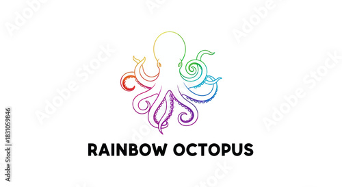 Vibrant Rainbow Octopus Outline Logo Design Modern Graphic Illustration