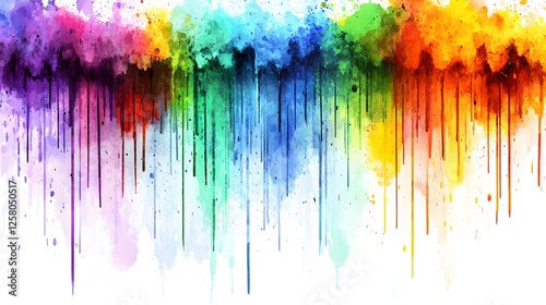 Vibrant Rainbow Watercolor Drips Abstract Background