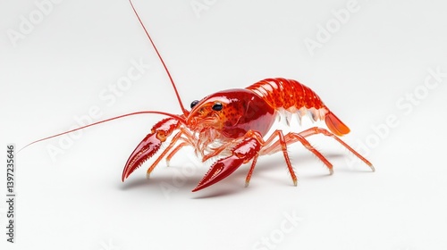 Vibrant Red Crawfish on White Background Captured in Close-Up Detail