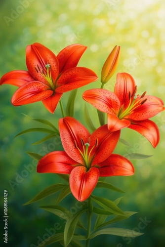 Vibrant red lilies blooming in a lush green field