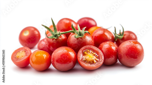 Vibrant red tomato isolated on a white background.