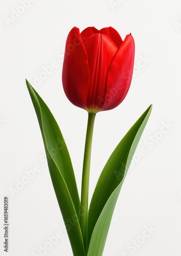 Vibrant red tulip on white
