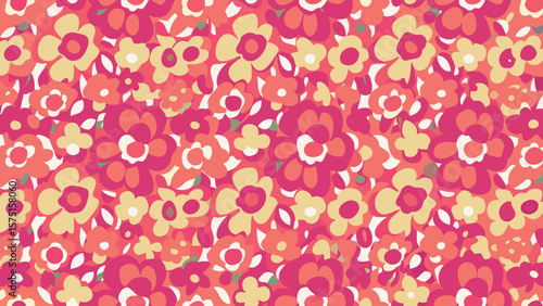 Vibrant repeating floral pattern in pink and yellow on a transparent background
