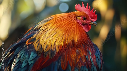 Vibrant Rooster Portrait with Colorful Plumage