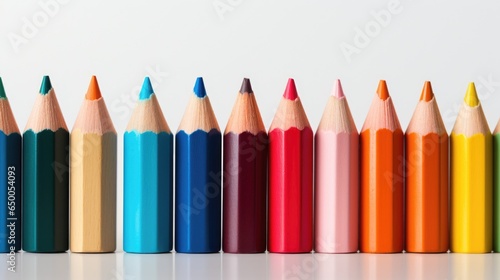 Vibrant Spectrum: Row of Colored Pencils on Minimal Background