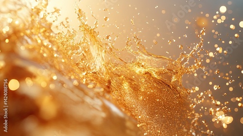 Vibrant splash of golden liquid with dynamic movement, creating excitement and creativity in design projects.