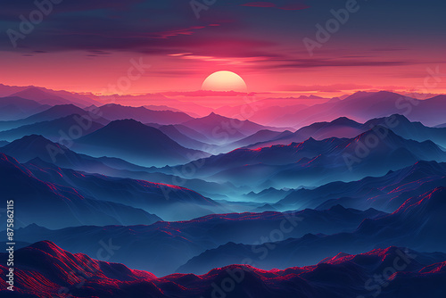 Vibrant Sunset Mountain Range Abstract Art