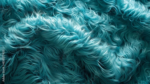Vibrant teal faux fur with a playful curly pattern adding dimension and liveliness to the fabric