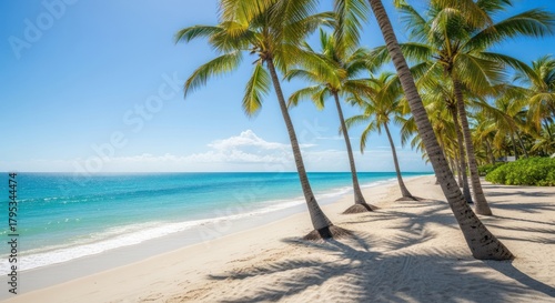 Vibrant Tropical Beach Paradise with White Sand, Palm Trees, and Sparkling Turquoise Ocean