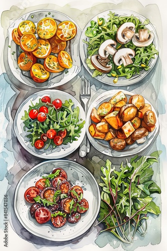 Vibrant Vegetarian Delights on Watercolor Background Generative AI