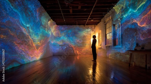 Vibrant wall reflections creating stunning hallway design high resolution picture