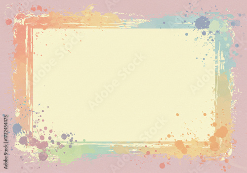 Vibrant watercolor paint splatter border frames creamy textured background for creative design projects and invitations