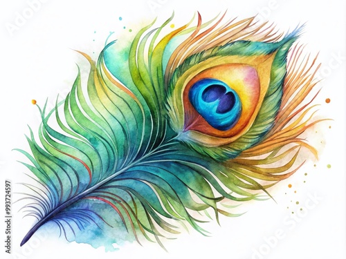 Vibrant Watercolor Peacock Feather Art Illustration on White Background for Creative Projects and Designs
