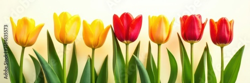 Vibrant yellow & red tulips, isolated Fresh, spring blooms , vivid, vibrant