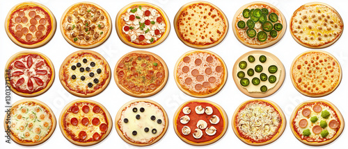 Vielfalt an leckeren Pizzen mit bunten Belägen auf hellem Hintergrund