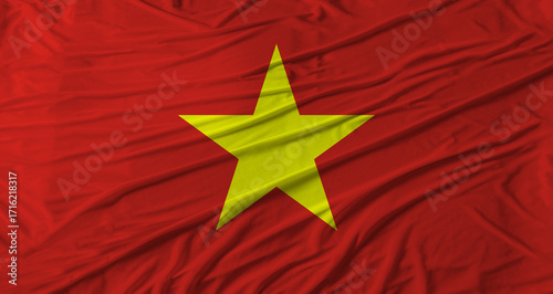 Vietnamese flag waving. Flag of Vietnam with cloth texture