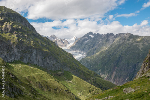 View closeup mountains scenes, route great Aletsch Glacier