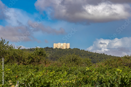 View of Castel del Monte, built in an octagonal shape by Frederick II in the 13th century in Apulia, Andria province, Apulia, Italy