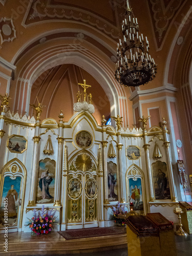 View of the interior of the Chesme Church (or Church of the Nativity of St. John the Baptist). In St. Petersburg, Russia