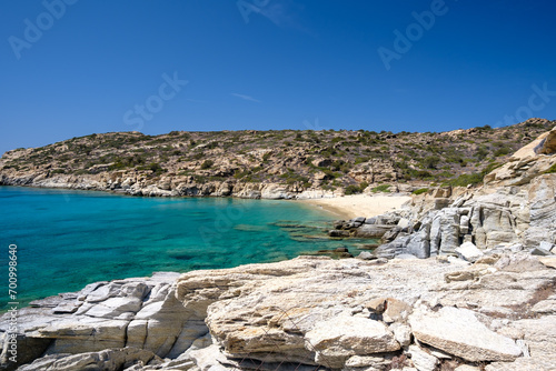 View of the most amazing turquoise beach of Pikri Nero, on a beautiful day on the island of Ios Greece