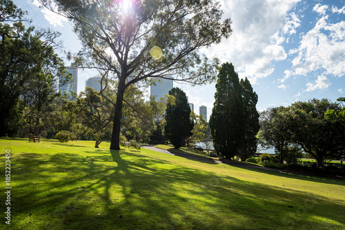 View of the Royal Botanic Garden, and Central Business district beyond, Sydney, NSW, Australia