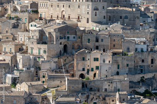 view of the sassi of Matera city located on a rocky outcrop in Basilicata