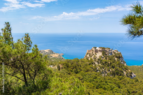 View of the west coast woth castle of Monolithos on the rock. Rhodes island.Greece.