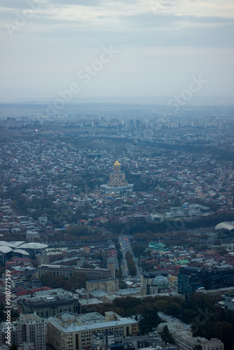 View of Tsminda Sameba Cathedral from above, Tbilisi, Georgia.