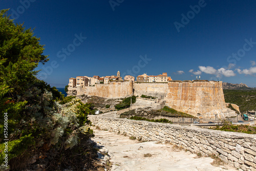View the Old Town of Bonifacio, the limestone cliff, South Coast of Corsica Island, France