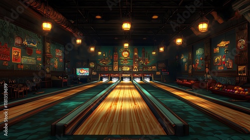 Vintage Bowling Alley Interior A Retro-Styled Illustration of a Classic Bowling Lane.
