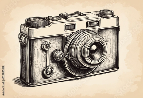 Vintage camera hand drawn ink sketch, sketch vintage illustration