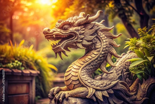 Vintage Dragon Statue, Ornate Asian Sculpture, Aged Stone Carving, Mystical Creature, Ancient Artifact