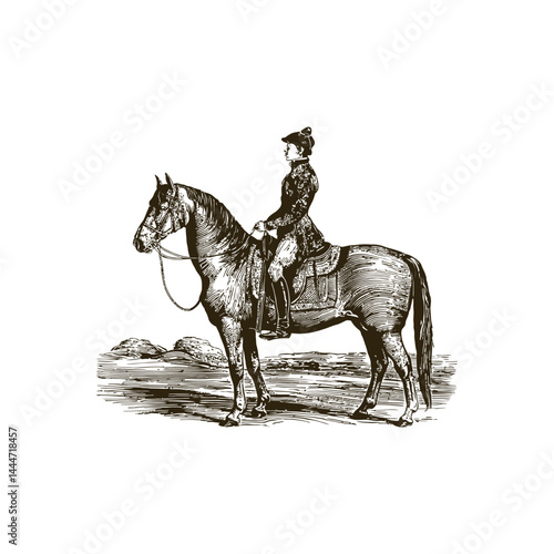 Vintage engraving woodcut horse rider retro vector illustration art design