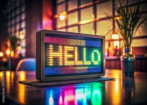 Vintage LED Sign: Hello Message, Retro Tech Display, 1980s Style