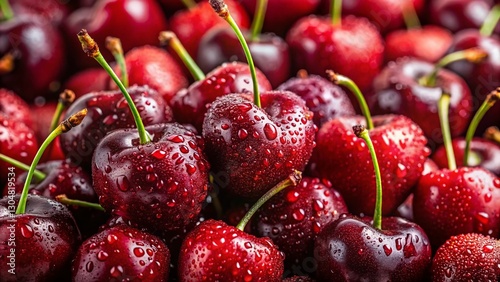 Vintage Photo: Juicy Red Cherries, Wet & Ripe, Abundant Harvest