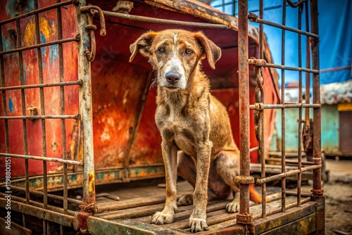 Vintage Photo: Neglected Circus Dog in Rusted Cage